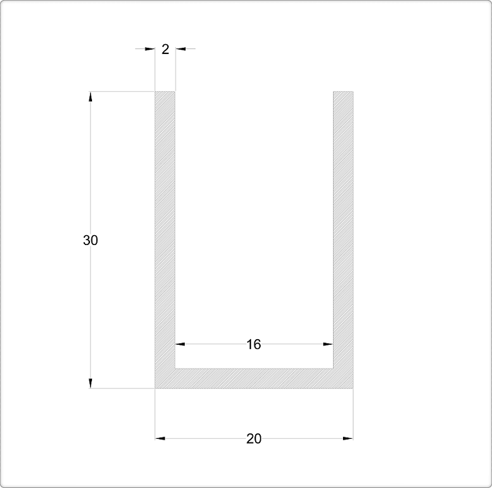 S 1003 – U type aluminium profile, 30x20x2 mm, 6 lnm